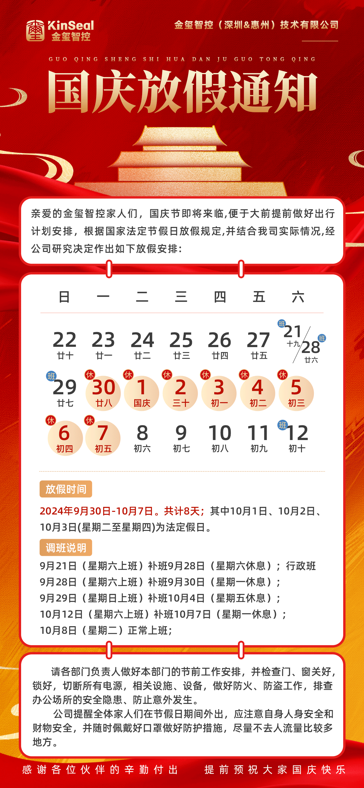 國慶放假通知